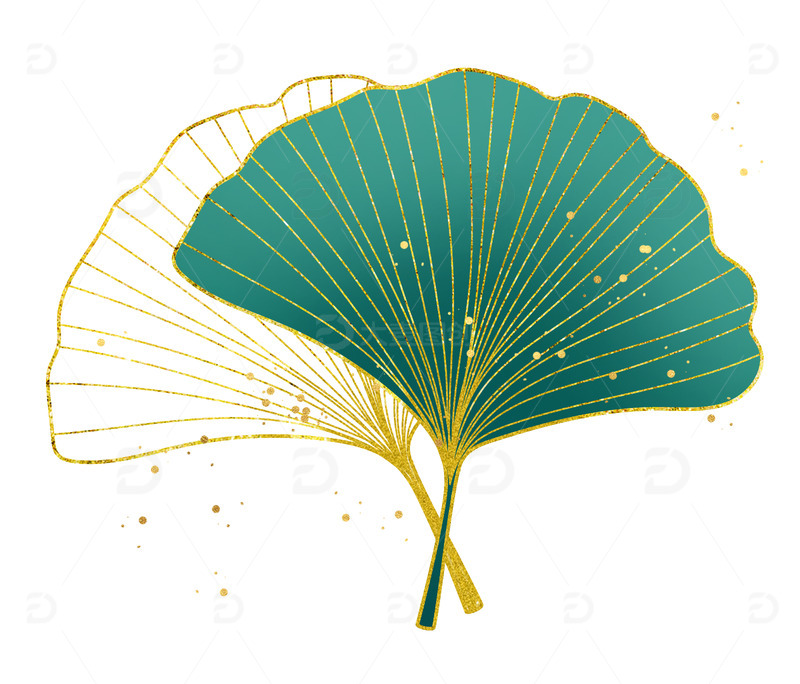/ 绿色金边洒金手绘叶子国潮装饰元素