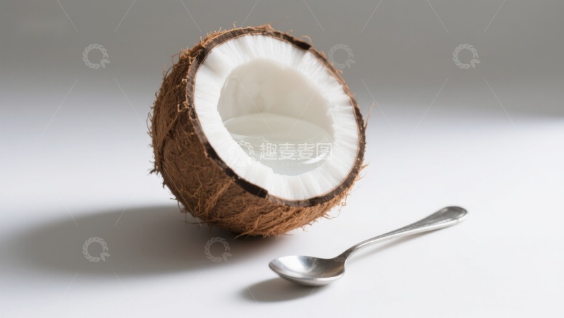 椰子半壳与银勺静物图