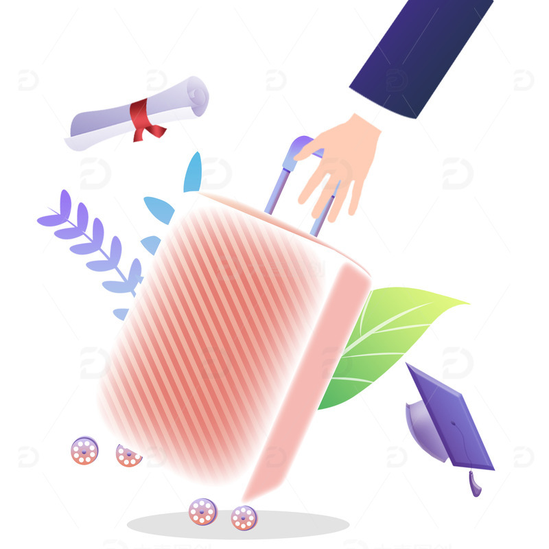 / 红色简约小清新毕业季毕业行李箱手绘图