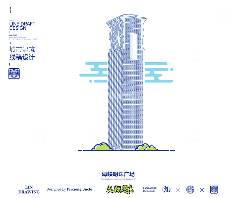 / 福建厦门海峡明珠广场城市地标矢量建筑线描