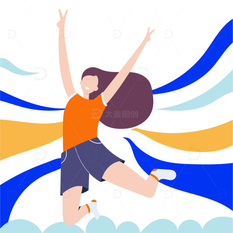 / 五四青年节手绘青年欢呼跳跃人物插画