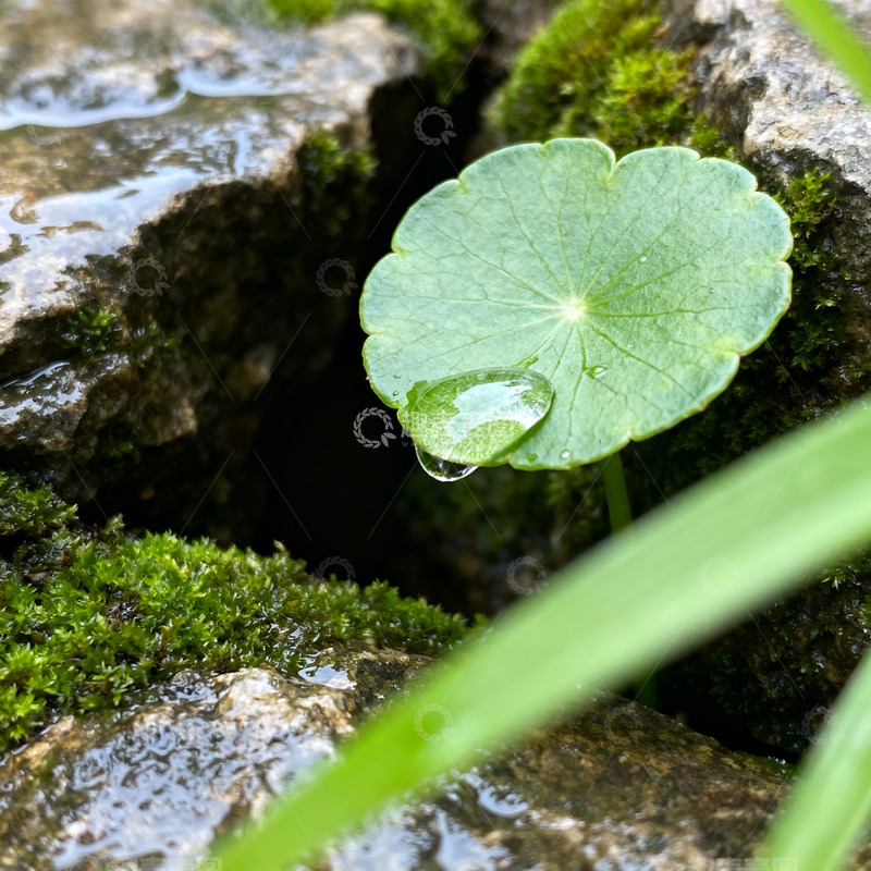 / 微距拍摄铜钱草青苔岩石
