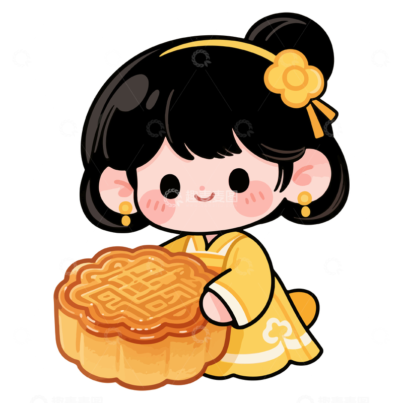 / 古风汉服小女孩月饼插画