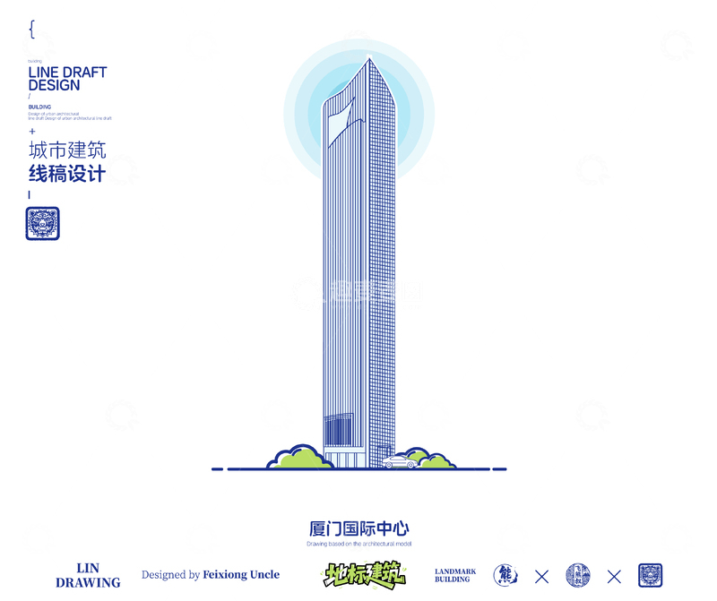 / 福建厦门国际中心城市地标矢量建筑线描海报