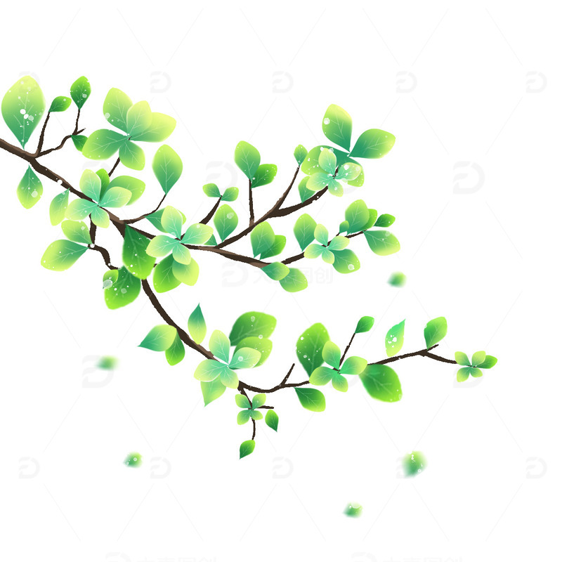 / 绿色小清新树枝春天树叶清明谷雨立夏
