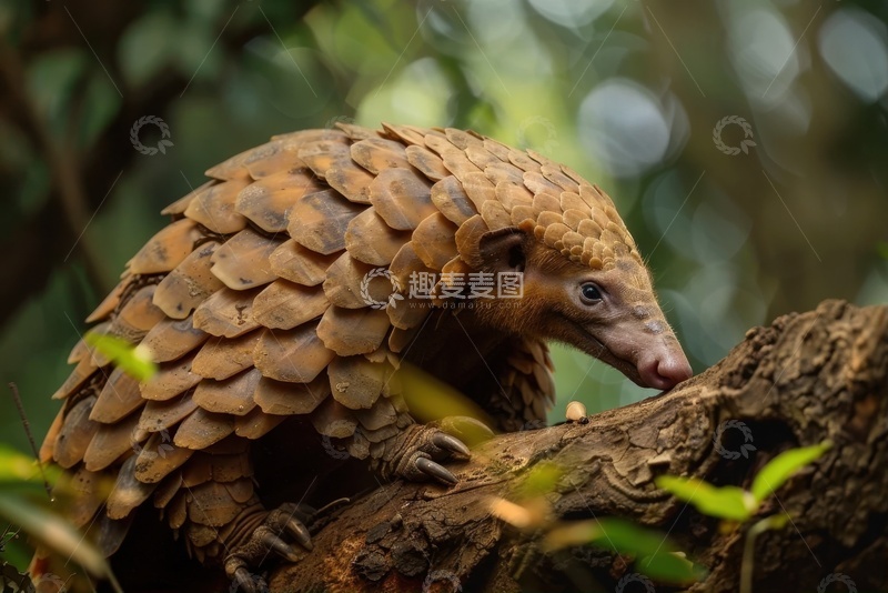 趴在树枝上的一只穿山甲
