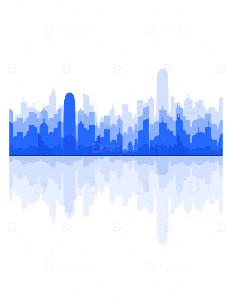 蓝色城市剪影都市高楼大厦香港建筑装饰