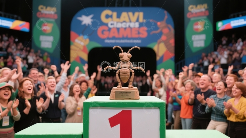 颁奖典礼上人群欢呼奖杯置于数字一的基座上