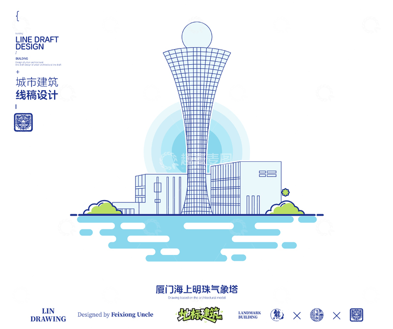/ 福建厦门海上明珠气象塔城市地标矢量建筑
