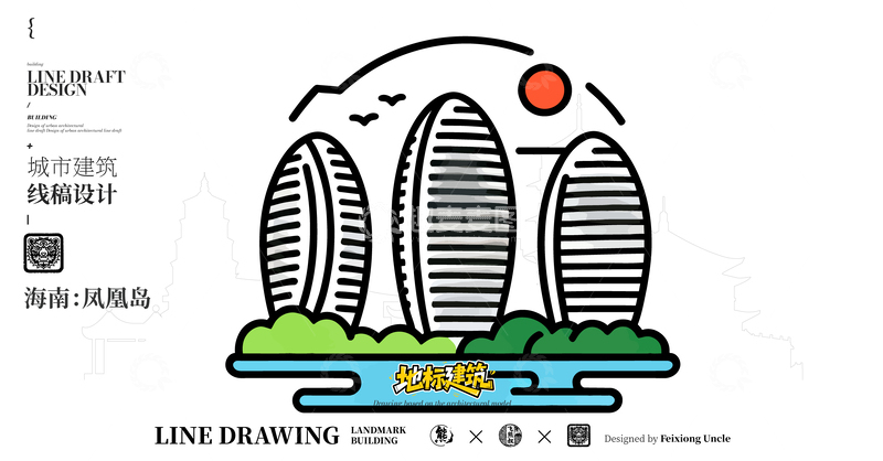 / 海南凤凰岛城市地标矢量建筑线描