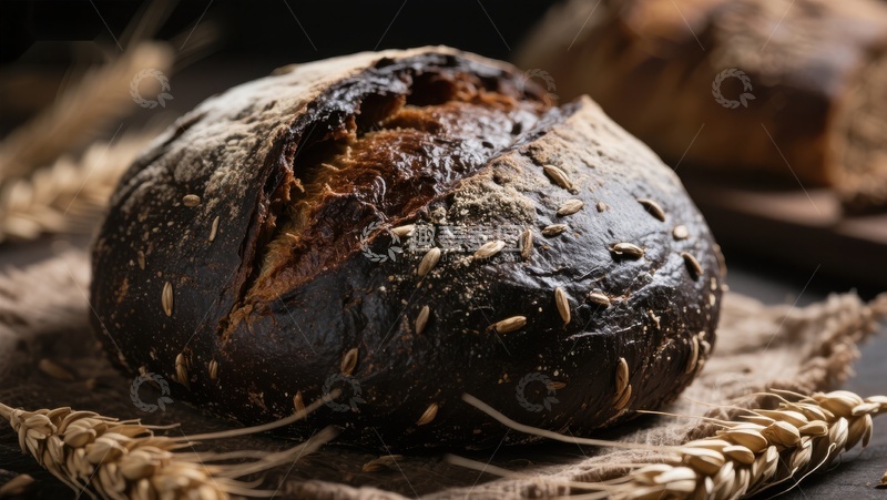 黑麦面包与麦穗的静物组合