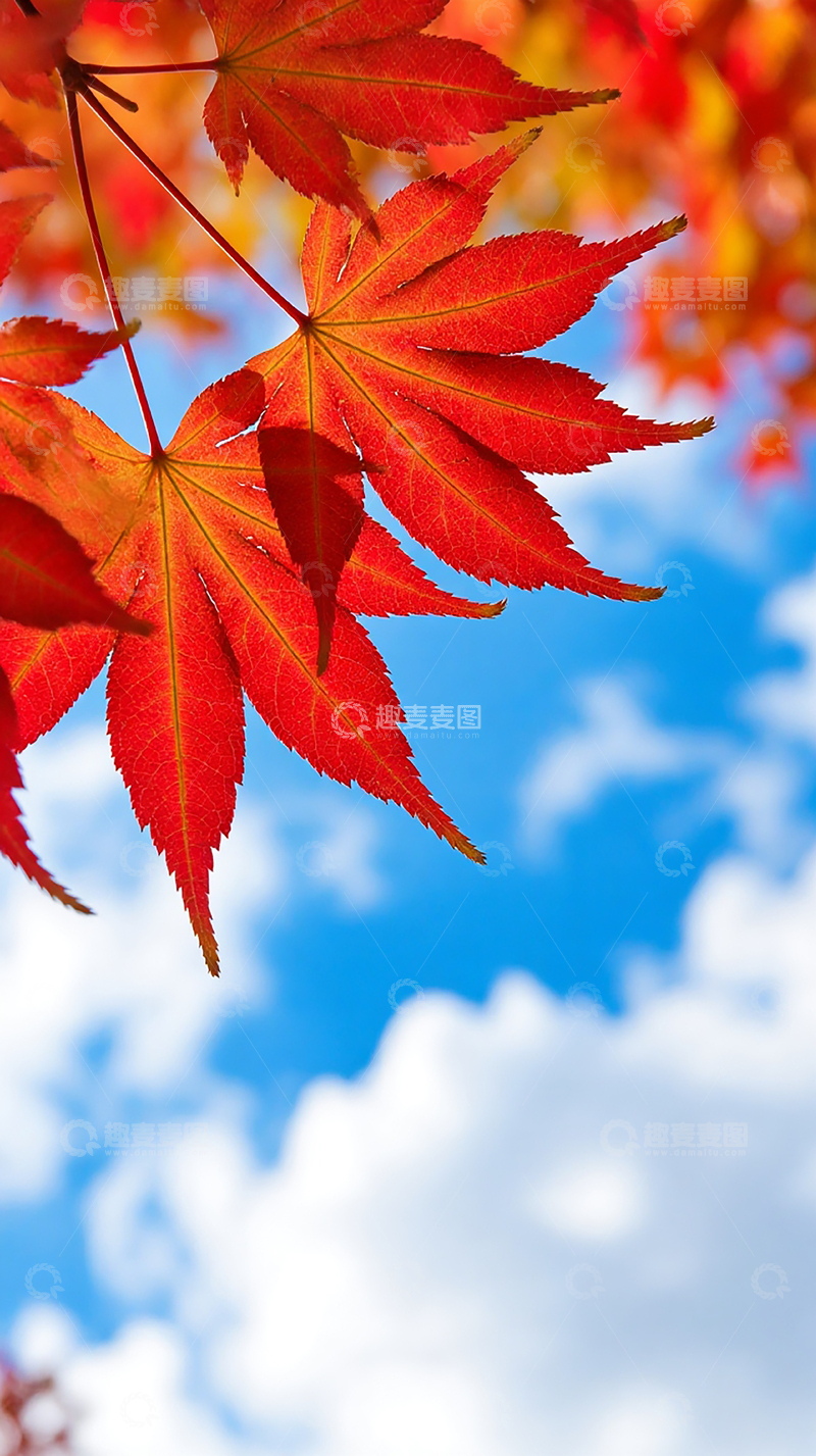 蓝天白云下秋天红叶