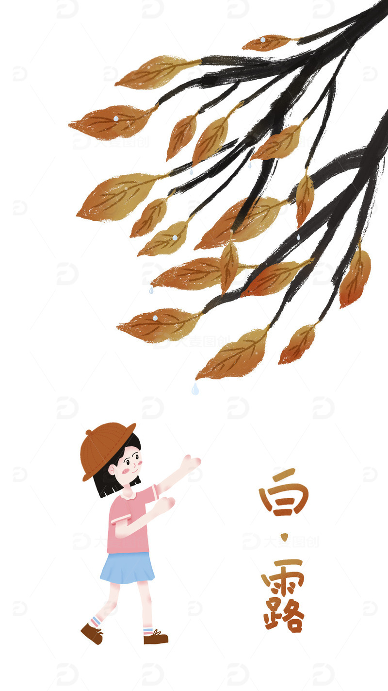/ 手绘白露节气女孩秋意浓露珠配图插画