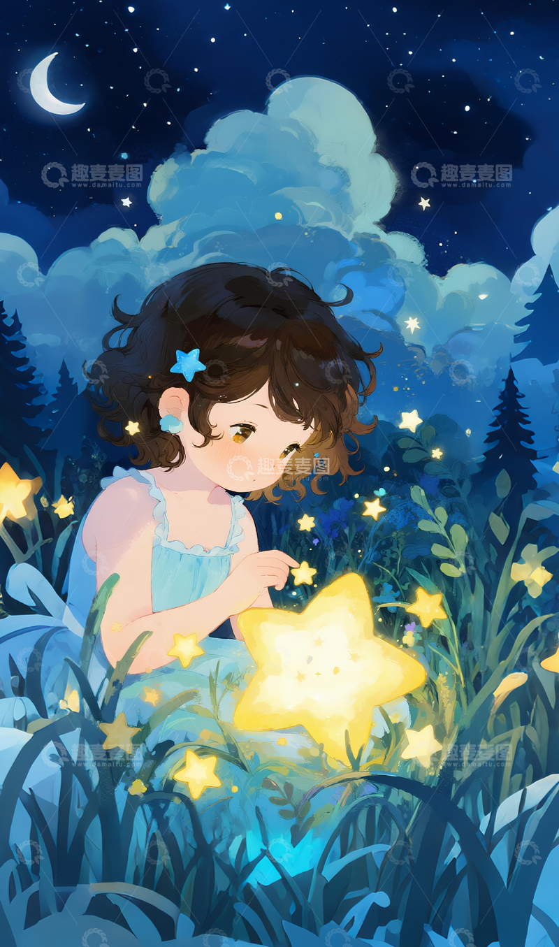 / 女孩和星星插画1